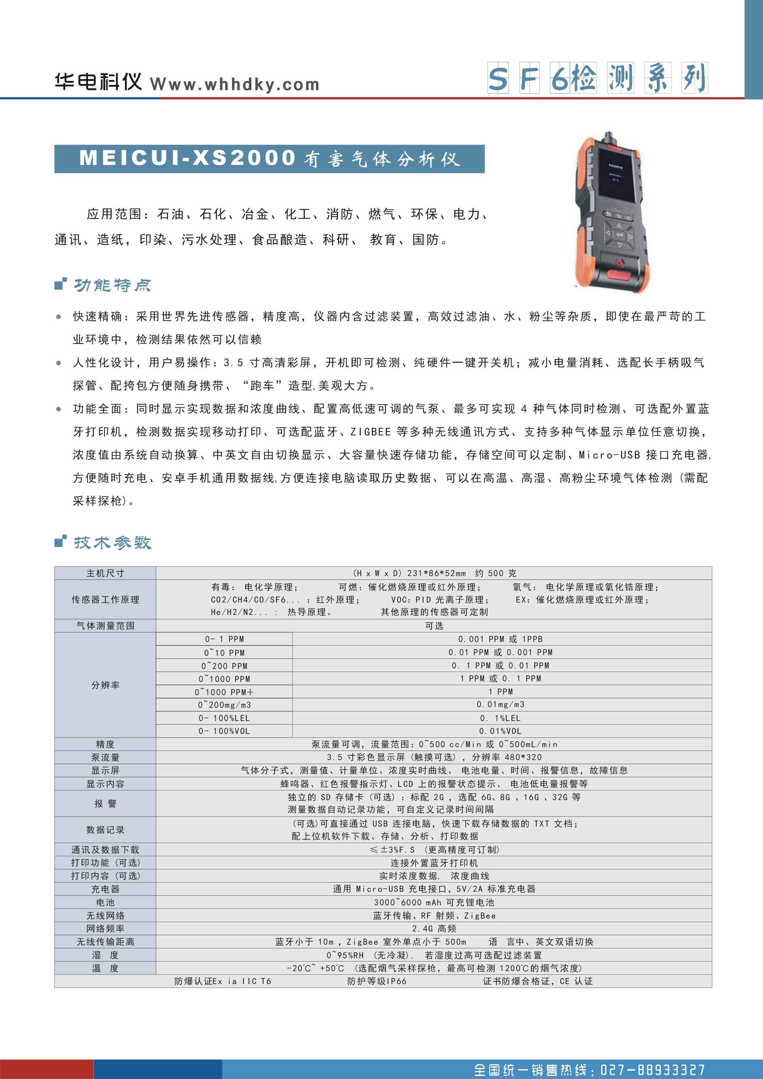 MEICUI-XS2000有害气体分析仪主要技术指标