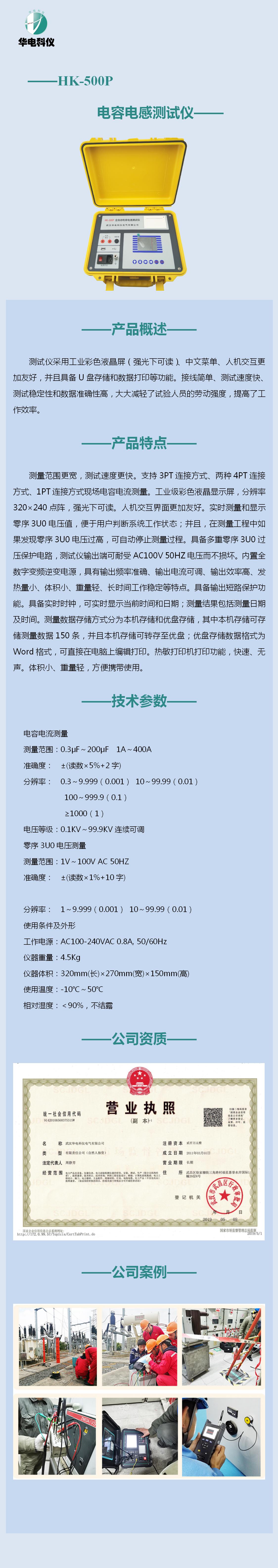 HK-500P型全自动电容电流测试仪,直接从PT的二次侧测量配电网的电容电流,与传统的测试方法相比,该仪器无需和一次侧打交道,因而不存在试验的危险性,无需做繁杂的安全措施和等待冗长的调度命令,只需将测量线接于PT的开口三角端就可以测量出电容电流的数据。
