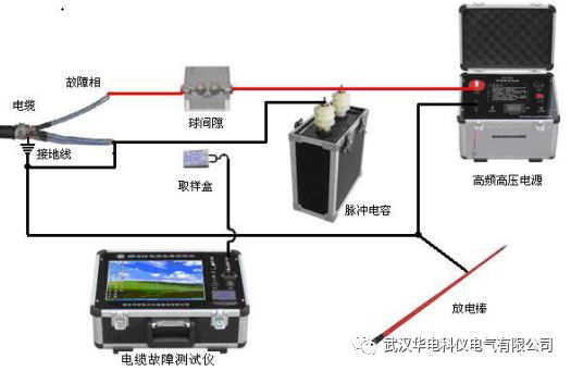 冲闪法现场故障测试接线示意图(配高频电源现场)