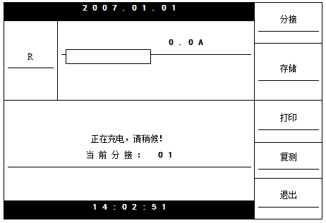 此时,绕组的电流开始逐渐上升,如果充电进度条和电流显示值长时间停滞不前,则可能所测阻值超出当前电流的测量范围,电流因此达不到预设值。此时可按“退出”键返回,重新选择电流再试。当达到预定的电流的时候,进入恒流状态。并进入下一界面