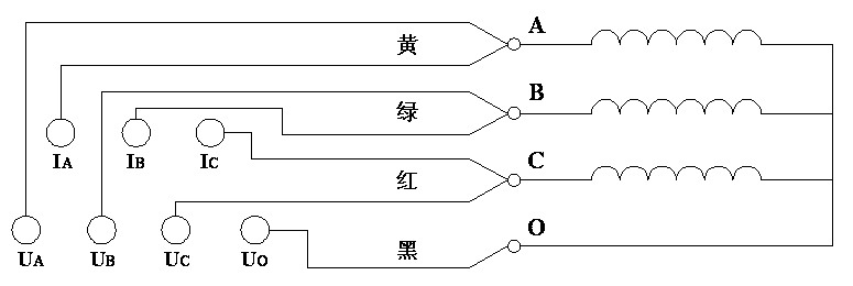 ② Ua Ub Uc Uo:测量电压输入,单相测量时Ua和Ub为电压输入,两相测量时Ua和Ub为第一通道电压输入,Uc和Uo为第二通道电压输入