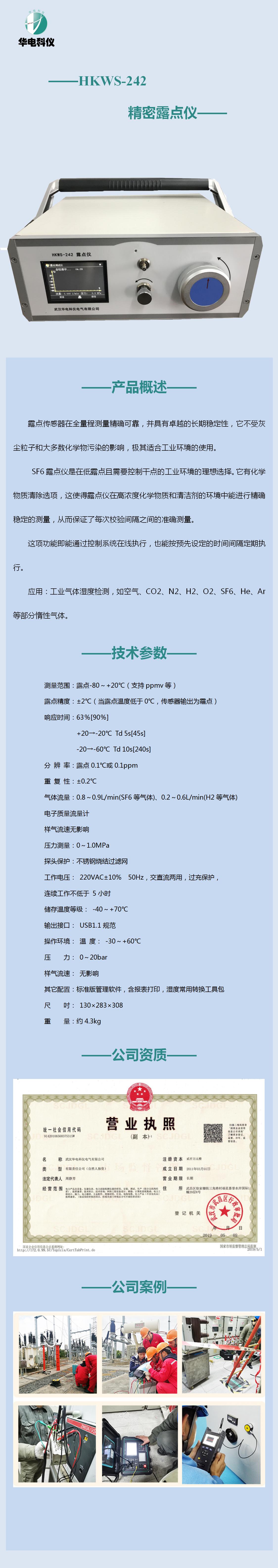 应用:工业气体湿度检测,如空气、CO2、N2、H2、O2、SF6、He、Ar等部分惰性气体。