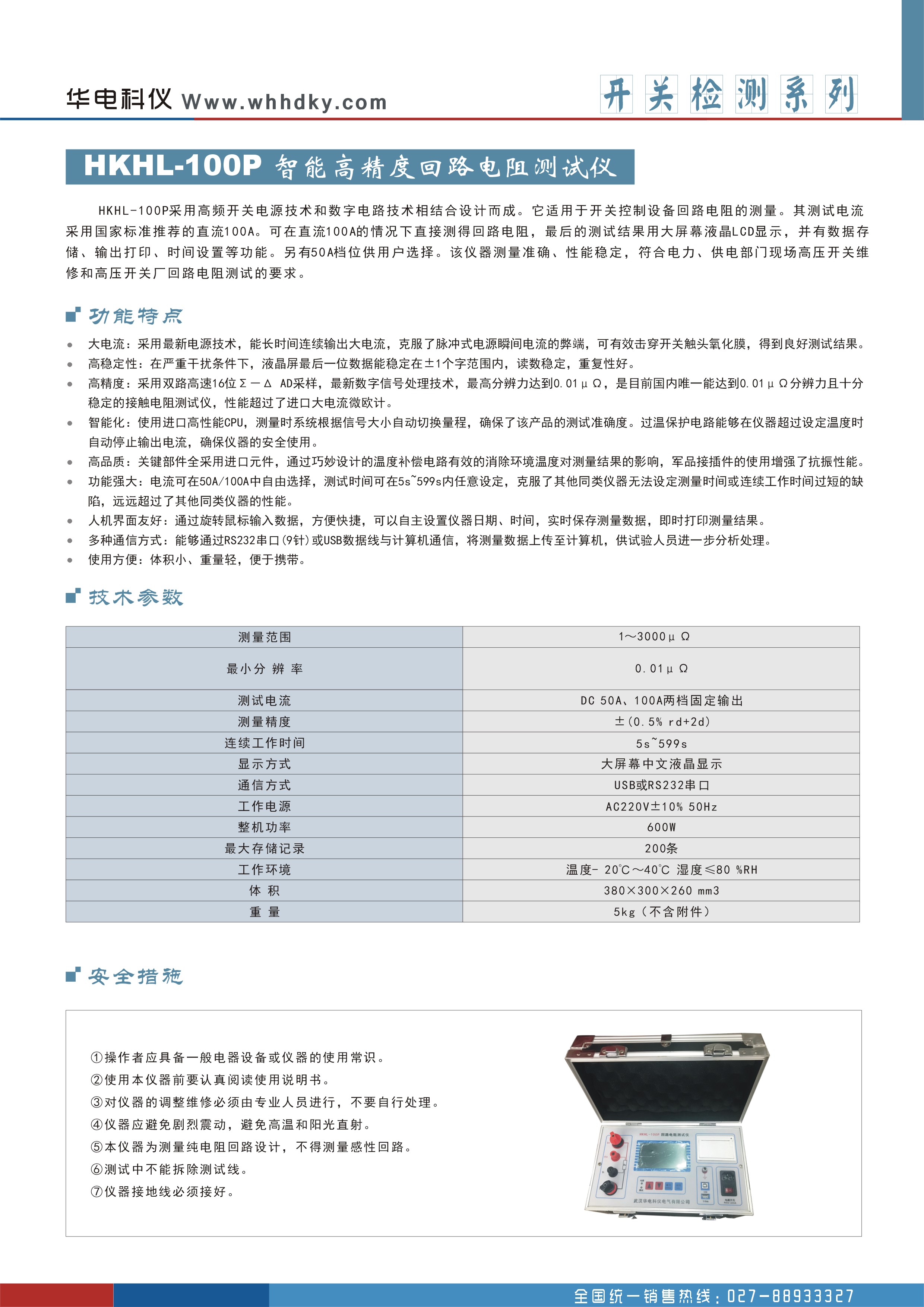 HKHL-100P智能高精度回路电阻测试仪(触点接触电阻测试仪)产品介绍: