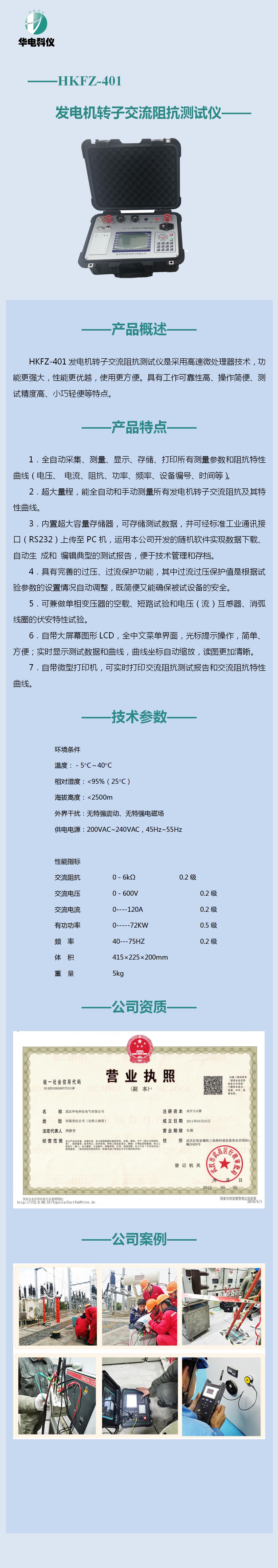 HKFZ-401发电机转子交流阻抗测试仪是我公司推出的增强型交流阻抗测试仪,该仪器采用高速微处理器技术,功能更强大,性能更优越,使用更方便。具有工作可靠性高、操作简便、测试精度高、小巧轻便等特点。