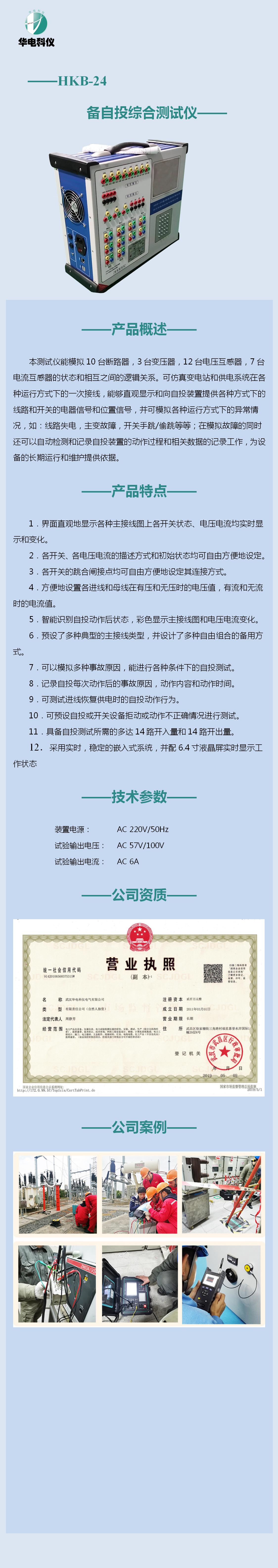HKB-24备自投测试仪能模拟10台断路器,3台变压器,12台电压互感器,7台电流互感器的状态和相互之间的逻辑关系。可仿真变电站和供电系统在各种运行方式下的一次接线,能够直观显示和向自投装置提供各种方式下的线路和开关的电器信号和位置信号,并可模拟各种运行方式下的异常情况,如:线路失电,主变故障,开关手跳/偷跳等等;在模拟故障的同时还可以自动检测和记录自投装置的动作过程和相关数据的记录工作,为设备的长期运行和维护提供依据。
