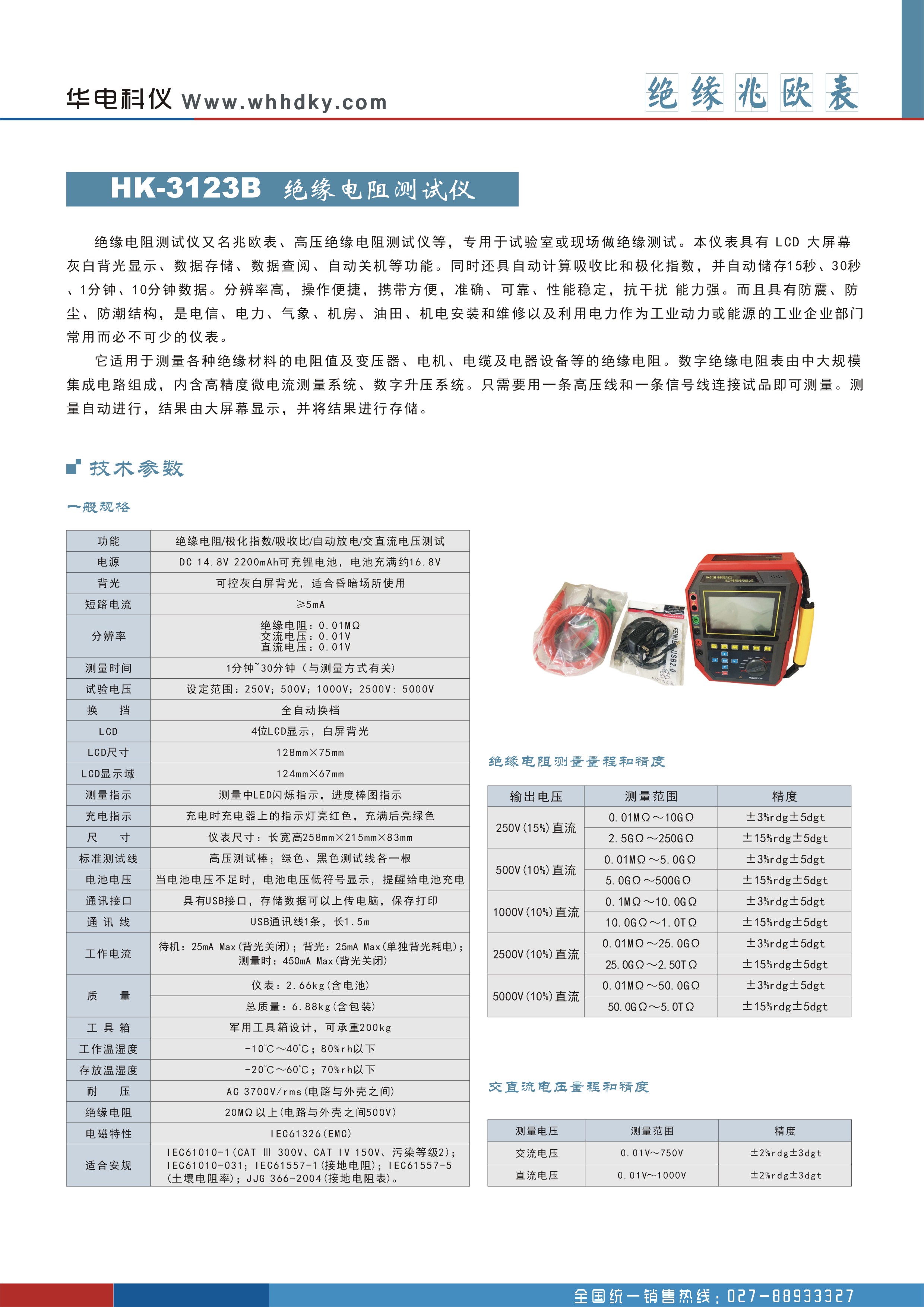 | 分辨率 | 绝缘电阻:0.01MΩ |