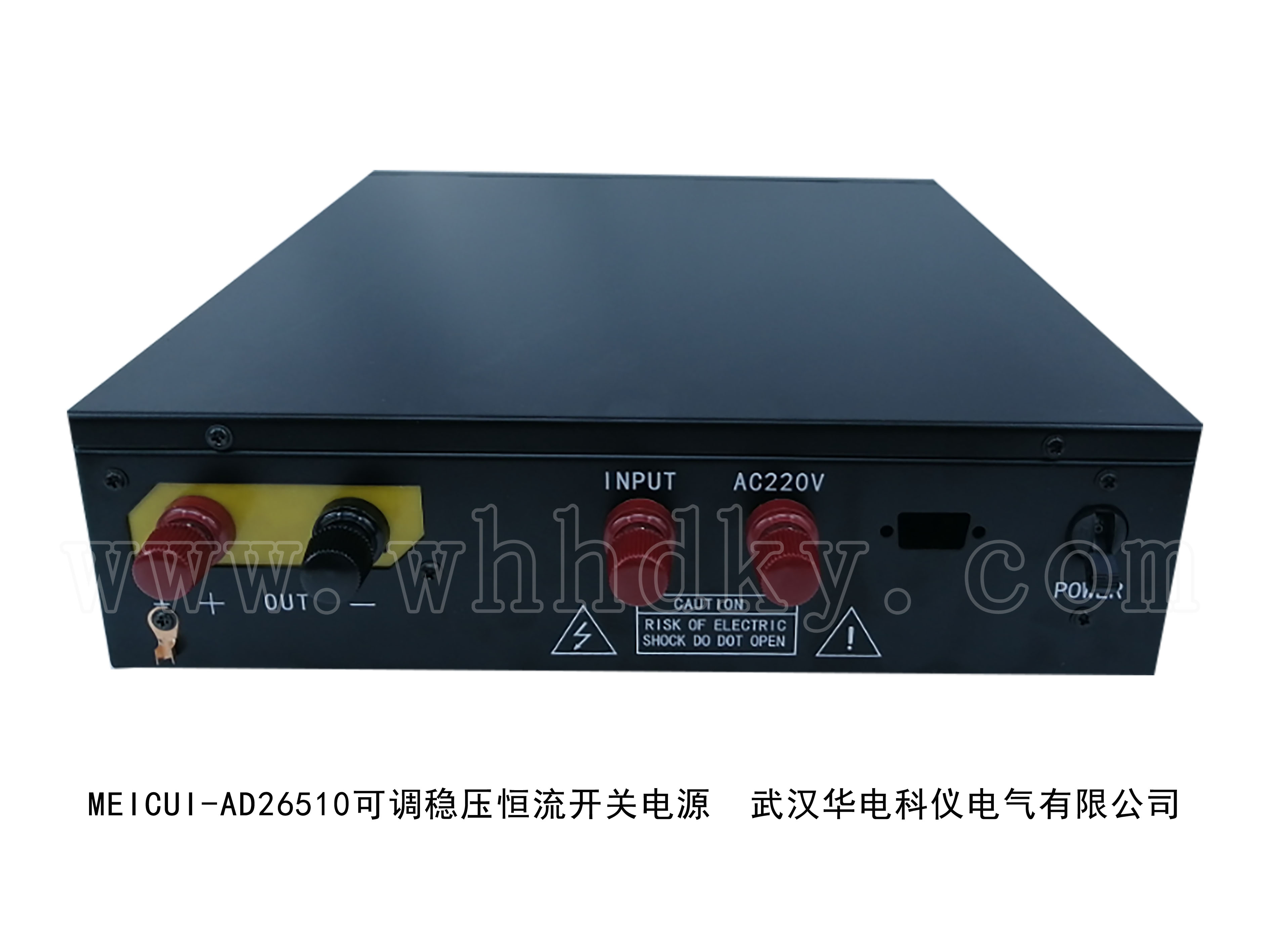 设备名称:可调稳压恒流开关电源 型 号:MEICUI-AD26510 数 量:1台套 生产厂家:武汉华电科仪电气有限公司